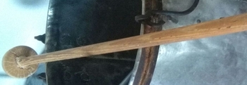 ruòtila, ruòtula, ruòtala Barra di legno con terminazione a disco, usata nella fabbricazione del formaggio per frantumare la cagliata.